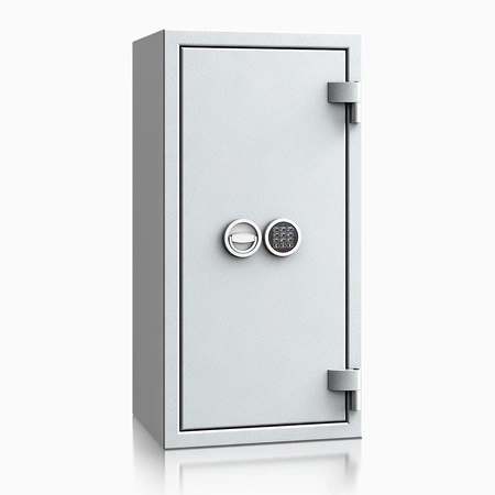 Seria save4ever I posiada certyfikat ECB•S i odporność na włamanie w klasie I, co oznacza poziom zabezpieczenia odpowiedni do przechowywania wartościowych przedmiotów w domu, biurze czy placówce usługowej. Wielościankowy korpus o grubości 25 mm oraz drzwi 84 mm stanowią skuteczną barierę przed próbami sforsowania. Czterostronne ryglowanie oraz profil zachodzący od strony zawiasów zwiększają odporność na podważanie i wyłamywanie drzwi, co istotne przy przechowywaniu gotówki, nośników danych czy umów handlowych.