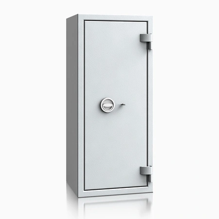 Sejf save4ever I wyposażono w zamek kluczowy VdS Klasa I / IMP Klasa A, dostarczany standardowo z trzema kluczami o długości 95 mm. To proste, niezawodne rozwiązanie, cenione w biurach i firmach, gdzie dostęp mają tylko wyznaczone osoby. Czterostronne ryglowanie oraz profil zachodzący od strony zawiasów zabezpieczają drzwi także przy próbie sforsowania zawiasu. Zewnętrzne zawiasy umożliwiają kąt otwarcia drzwi 180°, co ułatwia wkładanie i wyjmowanie segregatorów oraz kasetek na pieniądze.