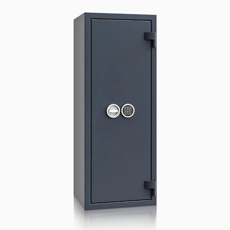 Sejf save4ever I / 402007.12 spełnia wymagania normy EN 1143-1 w klasie I, co oznacza wysoki poziom odporności na włamanie. Wielościankowy korpus o grubości 25 mm oraz solidne, 84-milimetrowe drzwi stanowią skuteczną barierę przed próbami sforsowania. Czterostronne ryglowanie, w tym specjalny profil zachodzący od strony zawiasów, minimalizuje ryzyko otwarcia drzwi przez podważenie. To dobry wybór do przechowywania ważnych umów, akt notarialnych, gotówki, elektroniki czy kosztowności w domu, biurze lub kancelarii.
