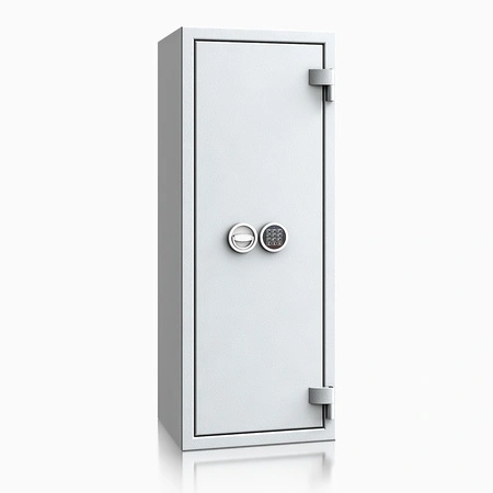 Sejf wolnostojący save4ever I / 402007.02 marki ISS to profesjonalny sejf domowy i biurowy w klasie I wg EN 1143-1, wyposażony w nowoczesny zamek elektroniczny Stellar Basic. Zapewnia wysoki poziom ochrony gotówki, dokumentów, nośników danych i biżuterii, a wolnostojąca konstrukcja o wysokości 1300 mm sprawia, że idealnie sprawdzi się jako główny sejf do domu lub firmy. Trzy pojemne półki, pojemność 169 l i możliwość przechowywania nawet 20 segregatorów czynią z niego funkcjonalny sejf na dokumenty i pieniądze.