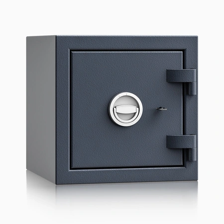 Sejf wyposażono w zamek kluczowy VdS klasa I / IMP klasa A, dostarczany standardowo z trzema kluczami długości 95 mm. To proste i niezawodne rozwiązanie, cenione wszędzie tam, gdzie liczy się odporność i brak konieczności pamiętania kodu. Zewnętrzne zawiasy oraz kąt otwarcia drzwi 180° ułatwiają wkładanie i wyjmowanie segregatorów, teczek oraz pudełek z kosztownościami. W standardzie znajduje się jedna regulowana półka, która pomaga uporządkować zawartość i lepiej wykorzystać przestrzeń.