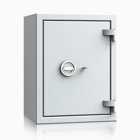 Model save4ever I / 402003.01 wyposażono w zamek kluczowy VdS klasa I / IMP klasa A, dostarczany standardowo z trzema kluczami o długości 95 mm. To proste i niezawodne rozwiązanie, szczególnie cenione w firmach, gdzie dostęp do sejfu ma ograniczona liczba osób. Czterostronne ryglowanie drzwi – w tym profil zachodzący od strony zawiasów – znacznie utrudnia odgięcie skrzydła i próby wyważenia. Zewnętrzne zawiasy oraz pokrętło wystające jedynie 12 mm ułatwiają codzienną obsługę, nie zwiększając nadmiernie głębokości całkowitej sejfu.