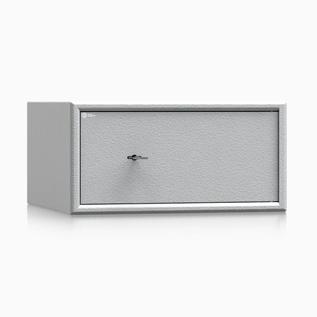 Sejf zamykany jest zamkiem kluczowym VdS klasa I, dostarczanym w komplecie z dwoma kluczami o długości 65 mm. Taki typ zabezpieczenia jest prosty w obsłudze, odporny na typowe próby manipulacji i nie wymaga zasilania – sejf pozostaje w pełni funkcjonalny niezależnie od dostępu do prądu. Wewnętrzne zawiasy ograniczają możliwość podważenia drzwi z zewnątrz, a opcja wykonania drzwi lewych bez dopłaty pozwala dopasować kierunek otwierania do układu mebli.