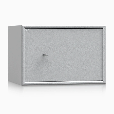 Korpus o grubości 3 mm i dwuściankowe drzwi o grubości 52 mm tworzą solidną barierę przed próbą sforsowania sejfu. Zamek kluczowy VdS-Klasa I, dostarczany w komplecie z dwoma kluczami, zapewnia prostą i niezawodną obsługę bez konieczności używania baterii czy pamiętania kodu. Zawiasy wewnętrzne i kąt otwarcia drzwi 90° ułatwiają dostęp do zawartości, jednocześnie utrudniając próby podważenia drzwi od zewnątrz.