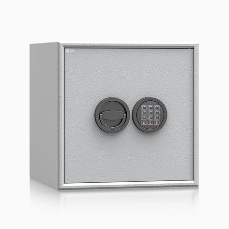 Wymiary zewnętrzne 380 x 380 x 375 mm sprawiają, że Adorf 331005.02 to średni sejf domowy, który można zamontować w szafie, komodzie lub w zabudowie biurowej. Neutralny szary kolor (RAL 7035) pozwala dyskretnie wkomponować sejf w otoczenie, bez rzucania się w oczy osobom postronnym. Drzwi otwierają się pod kątem 90°, co wystarcza do wygodnego wkładania segregatorów i pudełek z biżuterią, nawet w ciasnych wnękach meblowych.