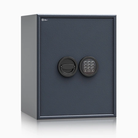 Wewnętrzne wymiary sejfu (wys. 474 mm, szer. 362 mm, gł. 311 mm) oraz pojemność 53 l pozwalają wygodnie przechowywać do 4 standardowych segregatorów. Regulowana półka umożliwia indywidualne zaaranżowanie wnętrza – jedną część przeznaczysz na dokumenty, drugą na gotówkę, biżuterię czy broń krótką. To praktyczne rozwiązanie dla osób, które chcą połączyć funkcję sejfu na dokumenty i sejfu na gotówkę do domu w jednym urządzeniu.