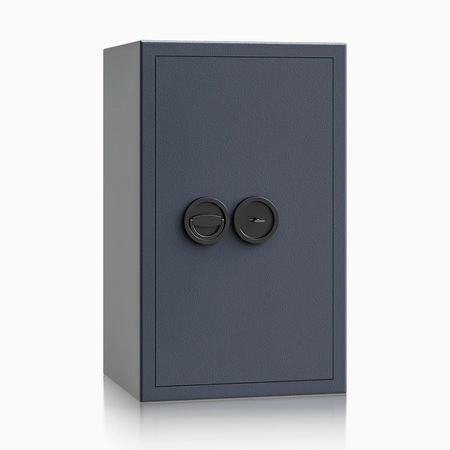 Przy wysokości 705 mm ISS Baden Baden 705 to duży sejf wolnostojący, który ustawia się bezpośrednio na podłodze – w garderobie, w szafie, przy biurku lub w pomieszczeniu biurowym. Wnętrze o pojemności 63 l bez problemu mieści do 4 segregatorów formatu A4, umowy, teczki z danymi klientów, gotówkę firmową, biżuterię czy nośniki danych. Dwuściankowy korpus (30 mm) i drzwi (52 mm) w klasie S2 tworzą skuteczną barierę przed włamaniem, a wewnętrzne zawiasy utrudniają sforsowanie drzwi od zewnątrz.