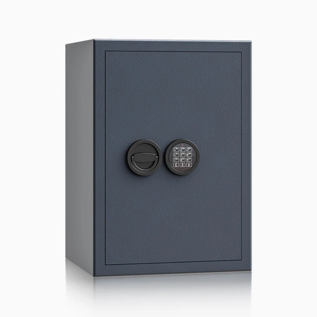 Sejf domowy ISS Baden Baden 605 to solidny sejf meblowy klasy S2 z zamkiem elektronicznym, zaprojektowany do bezpiecznego przechowywania gotówki, biżuterii i ważnych dokumentów w domu lub biurze. Dzięki wysokości 605 mm to duży sejf stojący na podłodze, oferujący pojemność 53 l i miejsce nawet na 4 segregatory formatu A4.