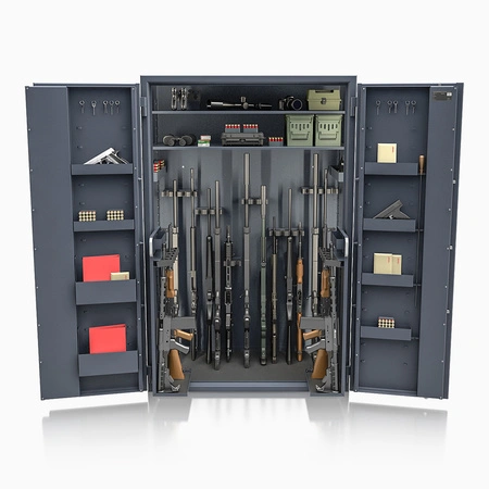 - przestawne na wysokości półki z uchwytami na broń krótką - pozwalają dowolnie spersonalizować wnętrze umożliwiając dogodne ustawienie broni o różnej wysokości.