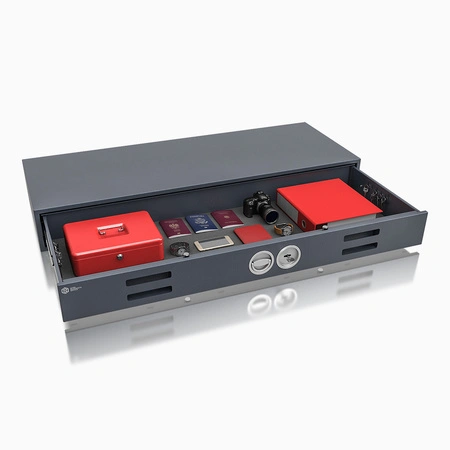 - Zamek: sejf zamykany zamkiem kluczowym VdS-Klasa I/IMP-Klasa A (standardowo z dwoma kluczami o długości 65 mm)