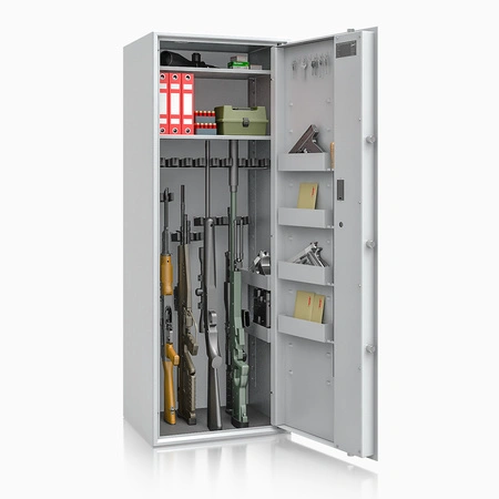 Poprzez możliwość przestawiania na wysokości półek jak i uchwytów na broń – można dowolnie spersonalizować wnętrze umożliwiając dogodne ustawienie broni o różnej wysokości.