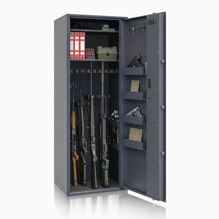 Poprzez możliwość przestawiania na wysokości półek jak i uchwytów na broń – można dowolnie spersonalizować wnętrze umożliwiając dogodne ustawienie broni o różnej wysokości.